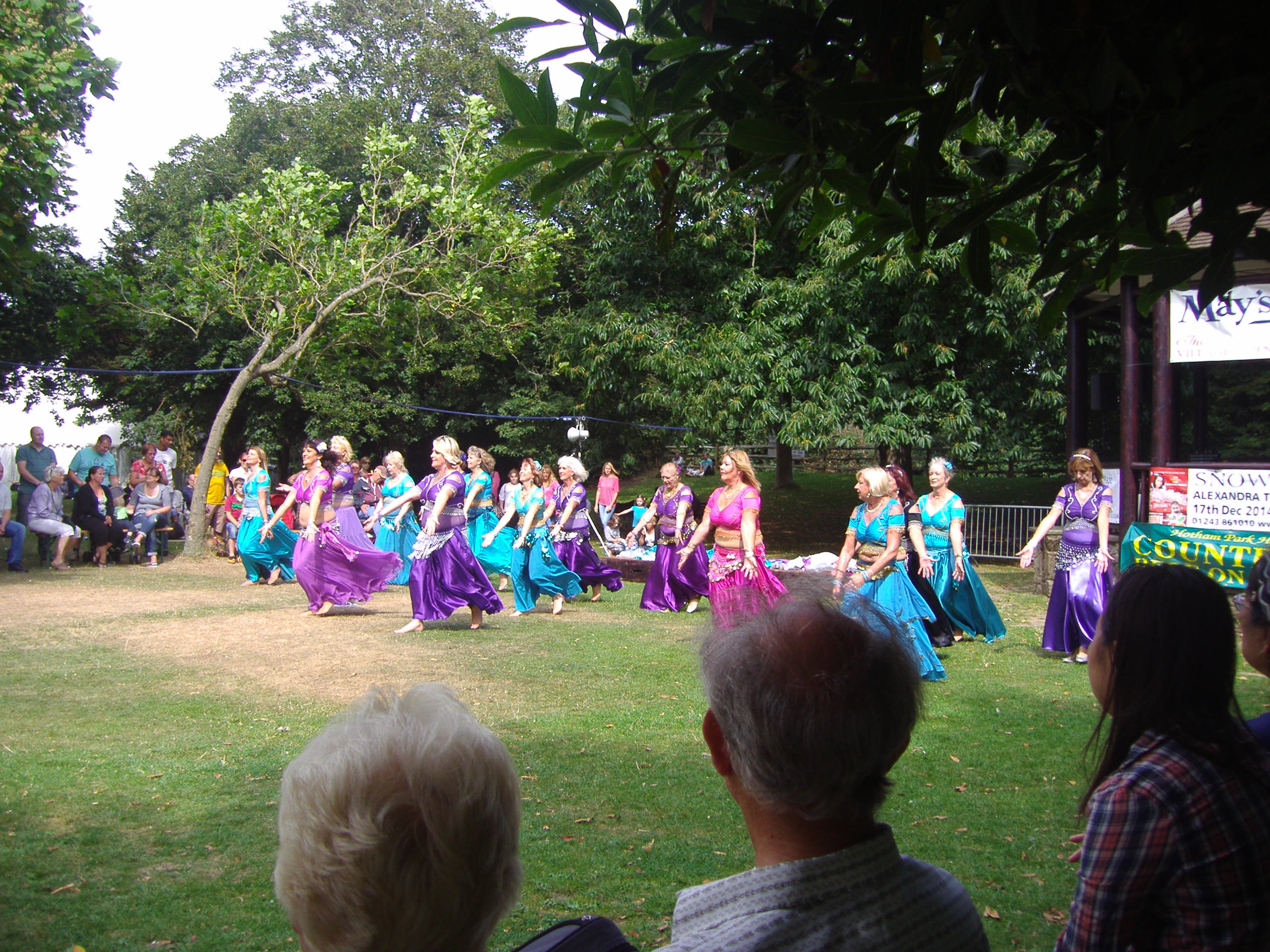 As I am artist for the park I was asked to run a children’s activity tent for the two-days of the country fair. I have  survived today’s steady stream of young artists covering sheets of paper with lurid paints and having a wonderful time. My back aches, my feet are killing me and I’m girding up my loins for doing it all again tomorrow. There must be easier ways not to earn a living!  The tent was near the bandstand and we were treated to acts including Zumba and exotic dancing ladies from Emsworth.